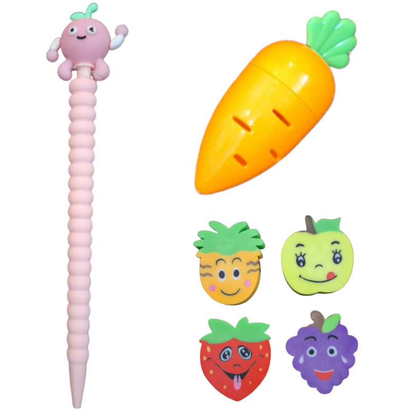 مداد نوکی 0.7 میلی متری مدل میوه ها به همراه تراش و پاک کن بسته 3 عددی