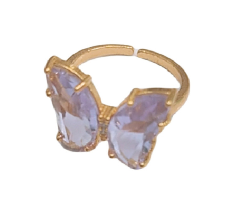 انگشتر مدل پروانه،دارای قابلیت تغییر سایز،کیفیت آبکاری بالا و ضد حساسیت،رنگ ثابت،ساخت کشور چین،دارای رکاب طلایی،این کار با نگین شفاف و رنگی مزین شده است.