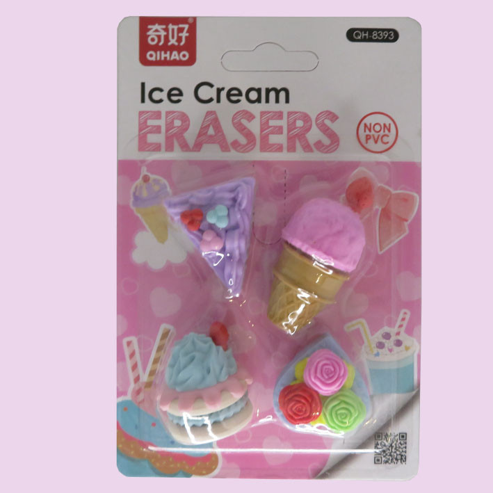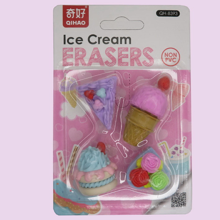 این مجموعه زیبا که بسیارمناسب هدیه دادن است شامل چهار عدد پاک کن فانتزی مینیاتوری با طرح های بستنی و کیک و از نوع پازلی هستند که مناسب کلکسیون دار های پاک کن نیز می باشد و بسیار متفاوت و جذاب است. ابعاد پاک کن ها حدود 4 سانت است.