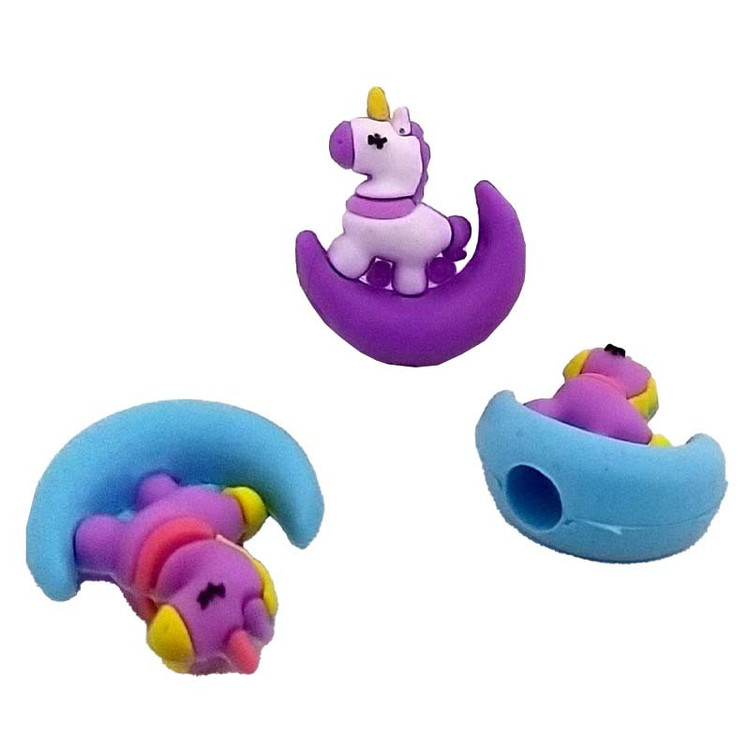 اقلام همراهاین مجموعه شامل 2عدد سرمدادی سیلیکونی تک شاخ بنفش و سفید روی هلال ماه آبی و بنفش است.