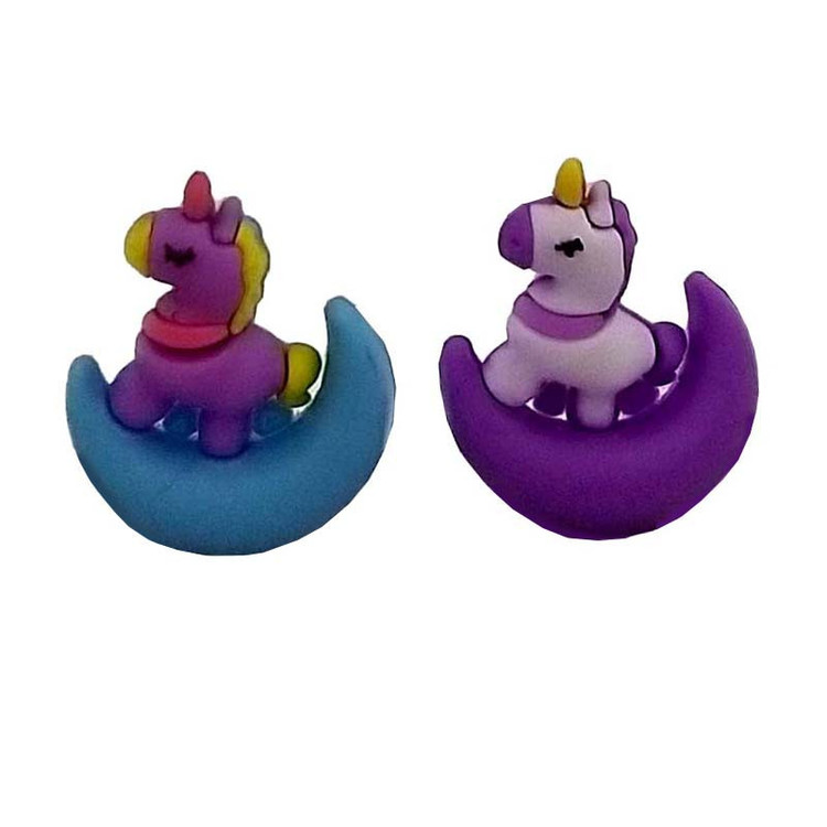 اقلام همراه: این مجموعه شامل 2عدد سرمدادی سیلیکونی تک شاخ بنفش و سفید روی هلال ماه آبی و بنفش است.