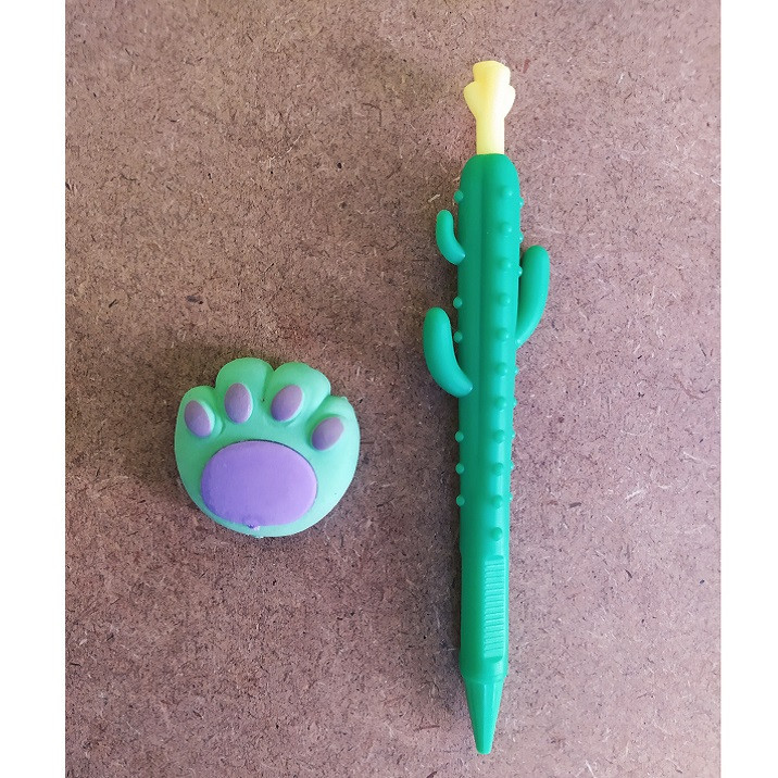 این ست شامل یک عدد اتود 0.5 میلیمتری با طرح کاکتوس با بدنه نرم و خوش دست و یک عدد پاک کن پنجه گربه مطابق تصویر است. از این ست میتوانید برای مصرف شخصی؛ هدیه و ... استفاده کنید و لذت ببرید. طرح این ست فانتزی و جذاب است و برای بزرگسال و کودک مناسب است