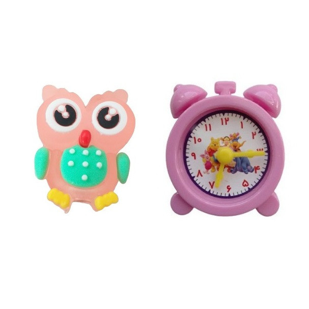سایر توضیحات: سرمدادی جغد از جنس سیلیکون و ساعت از جنس پلاستیک سخت می باشد