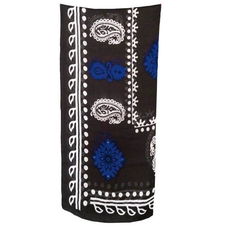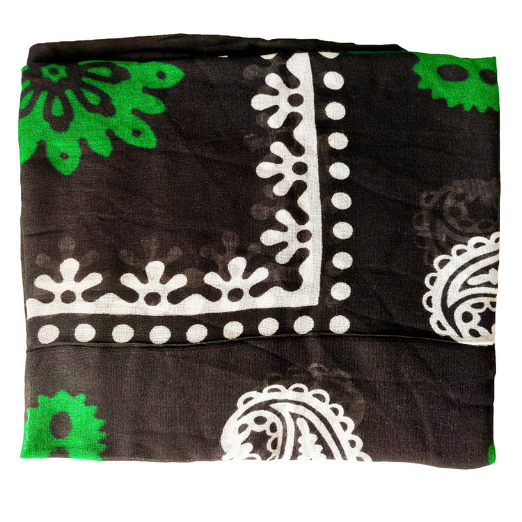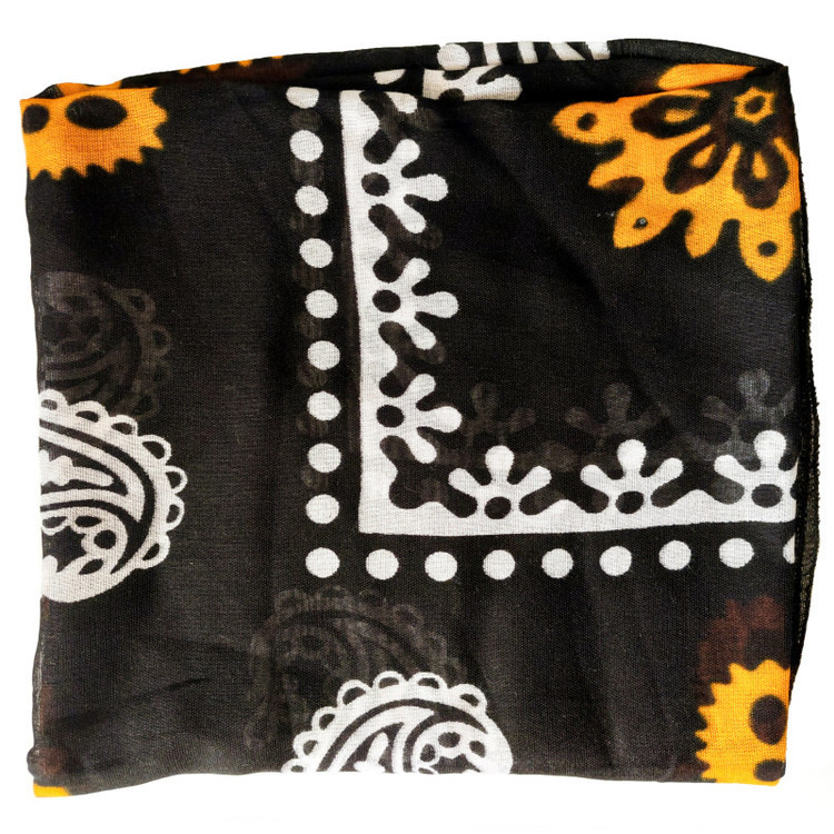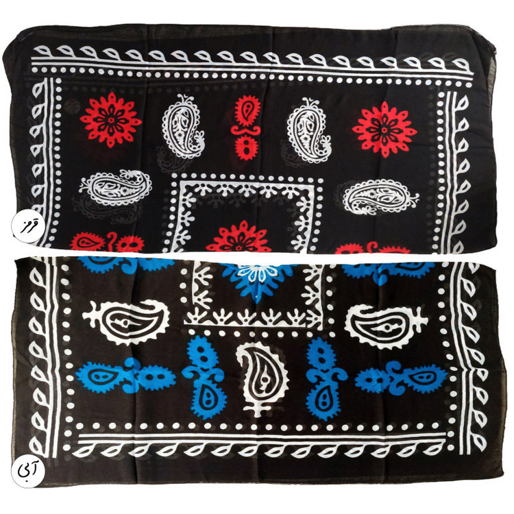 روسری سایز بزرگ با زمینه مشکی و طرح هایی به رنگ های قرمز، سفید می باشد. این روسری زیبا که الهام بخش فصل تابستان است که جنس نخی آن برای همه فصول مناسب است.با داشتن این روسری می توانید تازگی تابستان را همیشه با خود داشته باشید. این روسری به دلیل نزدیکی و ریشه مشترک فرهنگی در بین کردها و لرها استفاده می شود و از آن به عنوان روسری گلونی هم نام برده می شود.