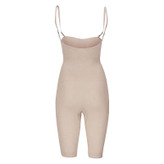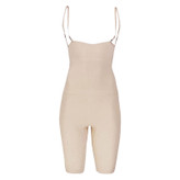 در این مدل از پارچه ی ماکرو فایبر استفادهشده که خاصیت آنتی باکتریال دارد و از تجمع میکروبهای مولد بوی نامطبوع در آن جلوگیری میکند و درنتیجه میتوان این مدل را بهصورت روزمره و بدون نگرانی از ایجاد بوی نامطبوع تعرق استفاده کرد. طراحی این مدل بدن را از زیر سینه تا بالای زانوها در برمیگیرد و بهواسطه طراحی مهندسی شدهای که دارد فشار را در قسمتهای لازم به بدن وارد میکند. در طراحی روی قسمت شکمی این مدل از پارچهای باقدرت بالا و کشش زیاد استفاده شده و بهراحتی به جمع شدگی ناحیه شکم میانجامد. در قسمت ران و باسن نیز این خاصیت وجود دارد. بالاتنه این مدل دو بند باریک باقابلیت تنظیم سایز دارد که این بندها را میتوان از روی گن به سهولت جدا کرد. پارچهای این گن به کمک فناوری نانو تهیهشده و در ساخت آن از الیاف پلیآمید به شکل ماکروفایبر استفاده شده است؛ اگر با بزرگنمایی بسیار بالا به سطح مقطع الیاف ماکروفایبر نگاه کنیم شکل ستارهای سطح مقطع آن را میبینیم که مهمترین عامل جذب آب و رطوبت است. این الیاف با جذب رطوبت و کشاندن آن به سطح منجر به ایجاد احساس خشکی و خنکی در پوست میگردند. علاوه بر اینکه رطوبت از سطح بدن دور میشود این الیاف خاصیت آنتیباکتریال دارند و از ایجاد باکتری مولد بوی نامطبوع در پارچه جلوگیری میکند. درنتیجه بهراحتی میتوان در درازمدت از این گن استفاده کرد.