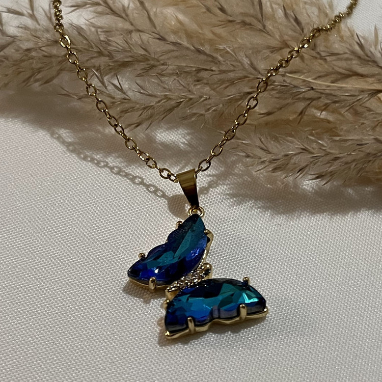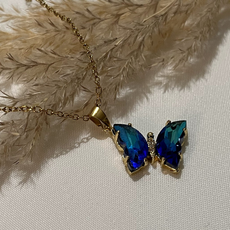 گردنبند زنانه مدل پروانه کریستال کد 3501